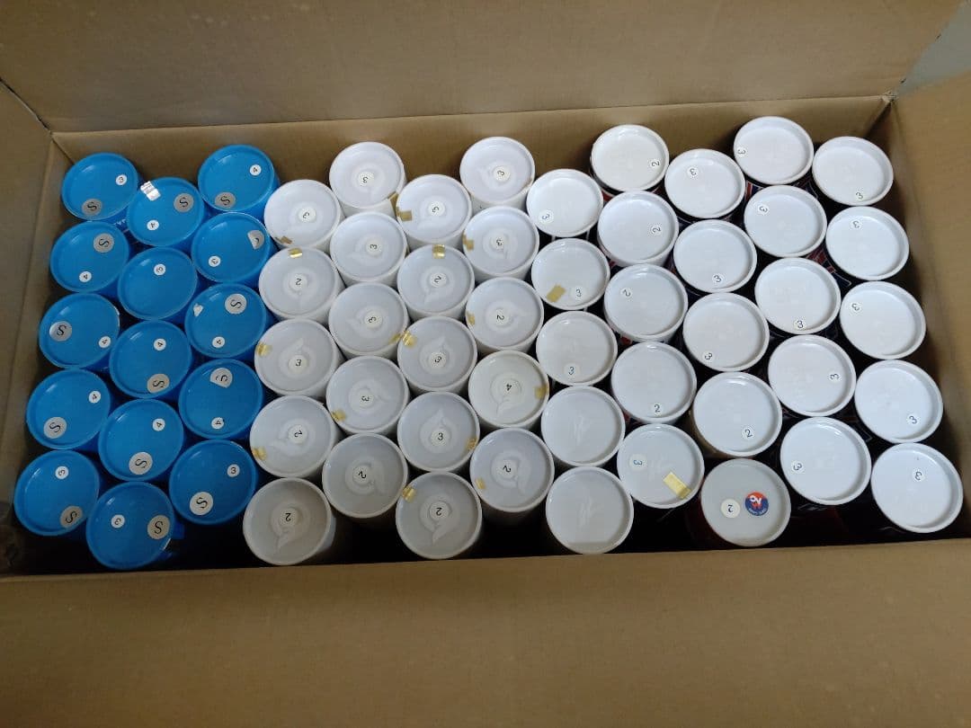 バドミントンの中古シャトルヨネックス ニューオフィシャルのみ120球になります。33球基礎打ち可、残りはノック用としてお考えください。写真はシャトルを良品と悪い方に区分けして撮影したものです。ニューオフィシャルは耐久性が高く、バドミントンのノックや野球のトスバッティングはもちろん、まだまだ状態が良いものもありバドミントンの基礎打ちに使えるのが少なくても33球はあります。やや厳しめに区分けしておりますのでノック用の中にも基礎打ち可能な物も含まれていると思われます。(羽はしっかりあるが軸が少し柔らかい。チョイ折れくらいだが飛行が試打しないと分からないなど、微妙なものはノック用扱い)写真、3枚目以降がよくないものです。番手は3と4番が混在しています。あくまで中古品ですので、クレーム等は避けて頂くよう、ご理解のほどよろしくお願いします。商品の性質上、シャトルの良し悪しの判断は個人差があります。シャトルの品質に関してシビアな方は購入を控えて頂けると幸いです。